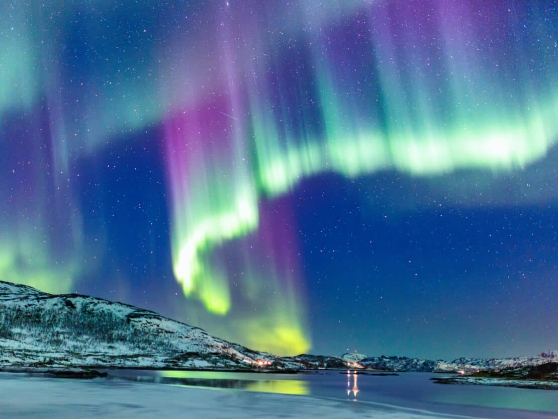 This natural wonder sets the night sky on fire, as vivid lights dance and stretch themselves out against a backdrop of ice and snow throughout the winter months in northern Norway.