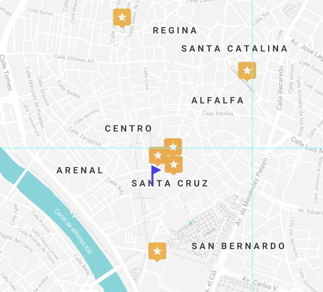 With 60.5% of the city’s main tourist attractions within a comfortable 2km radius, you can’t go too far wrong. Use landmarks like the Seville Cathedral and Alcázar Palace to help you work out where things are on maps of Seville.