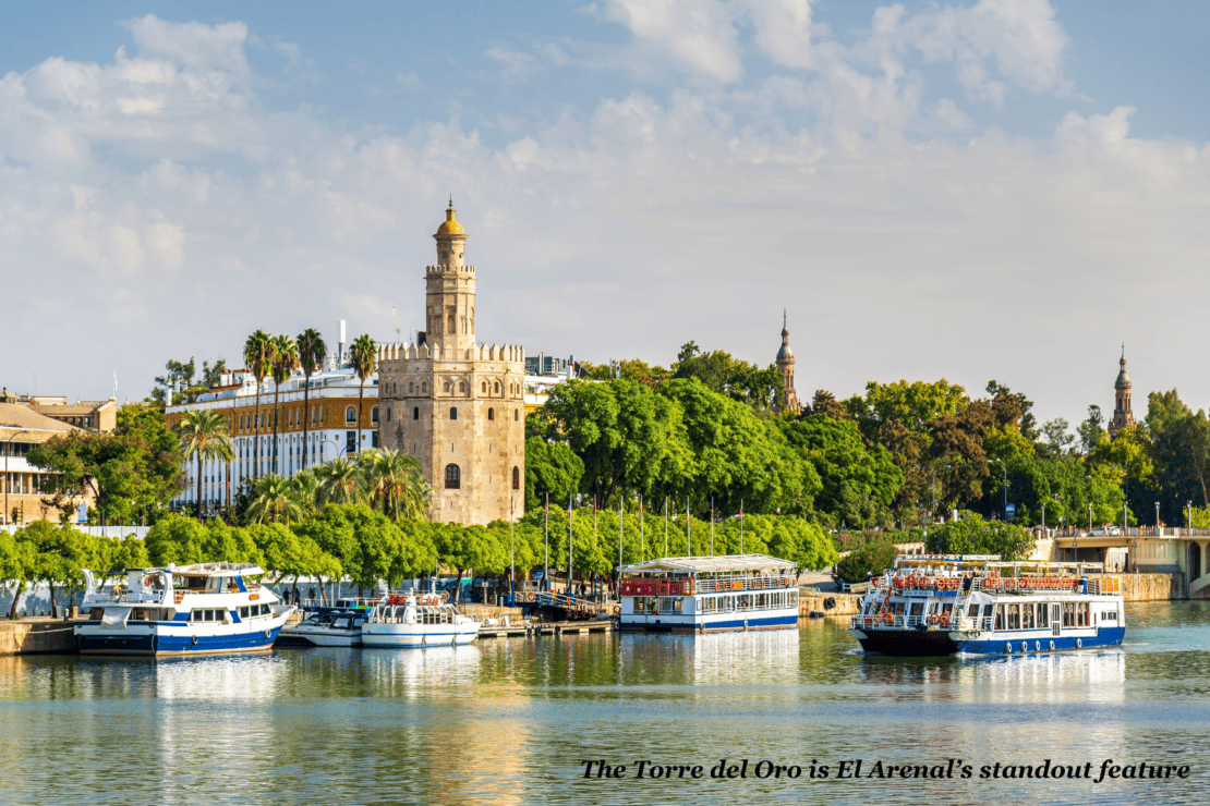 El Arenal runs from the river to La Giralda, including the 13th century watchtower the Torre del Oro. It’s an easy location, then, with access to waterside strolls and just a little quieter than the heart of Santa Cruz.