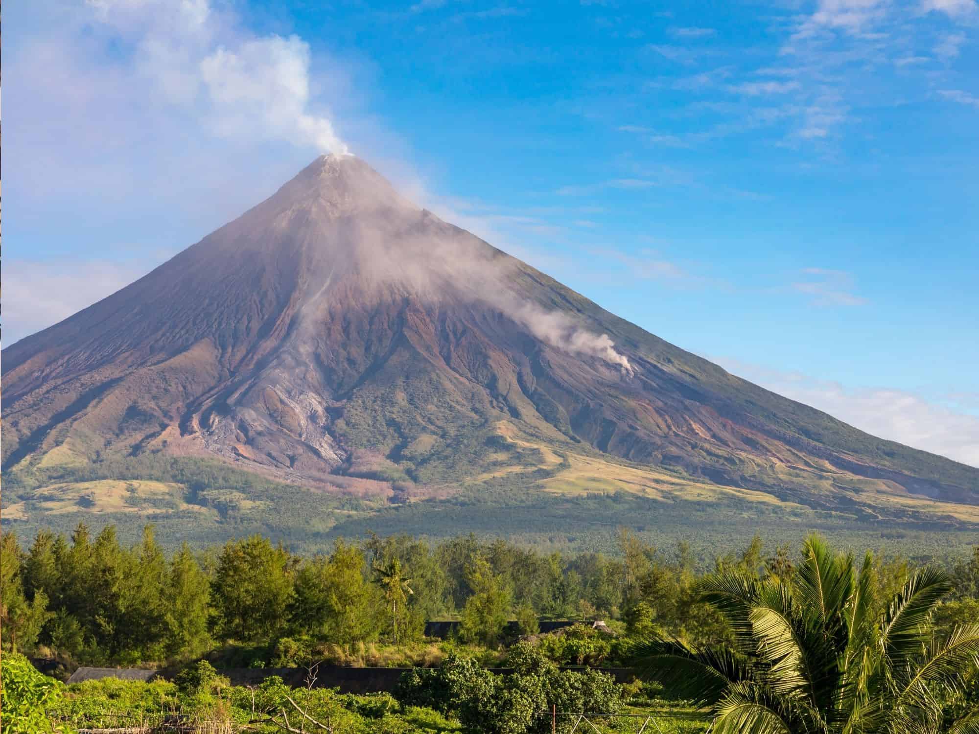 Palm trees in front of Mayon Volcano in  in the Philippines - Philippines bucket list